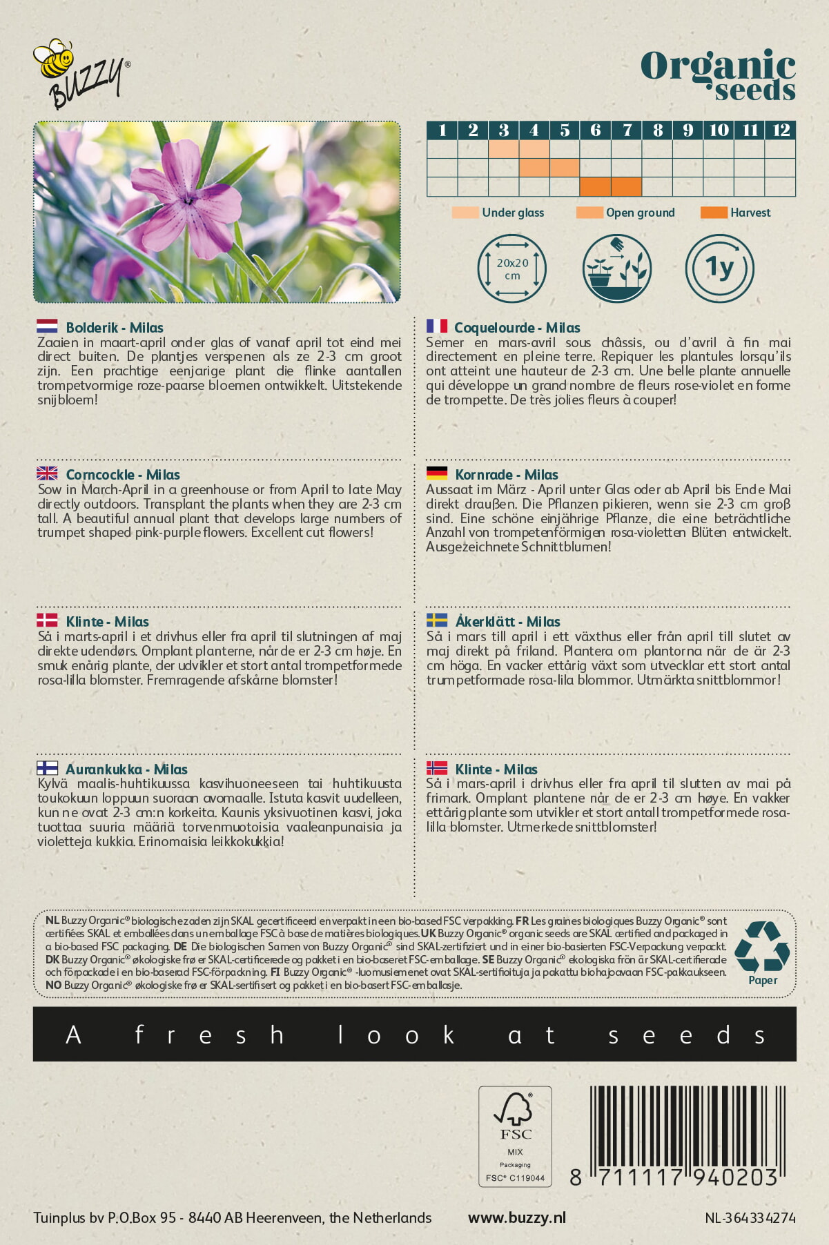 Buzzy® Organic Agrostemma Bolderik Milas (BIO)