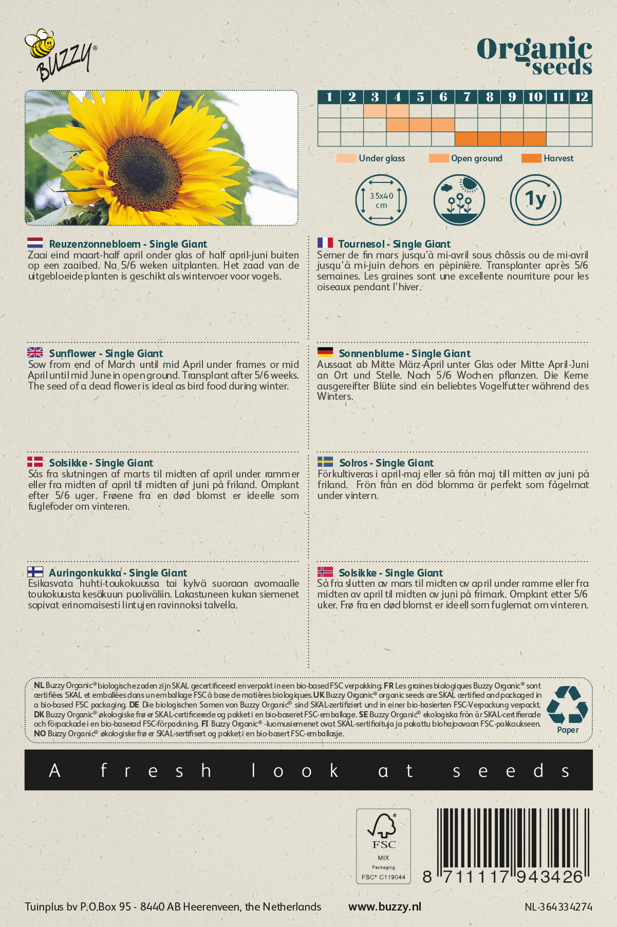 Buzzy® Organic Helianthus, Reuzenzonnebloem giganteus (BIO)