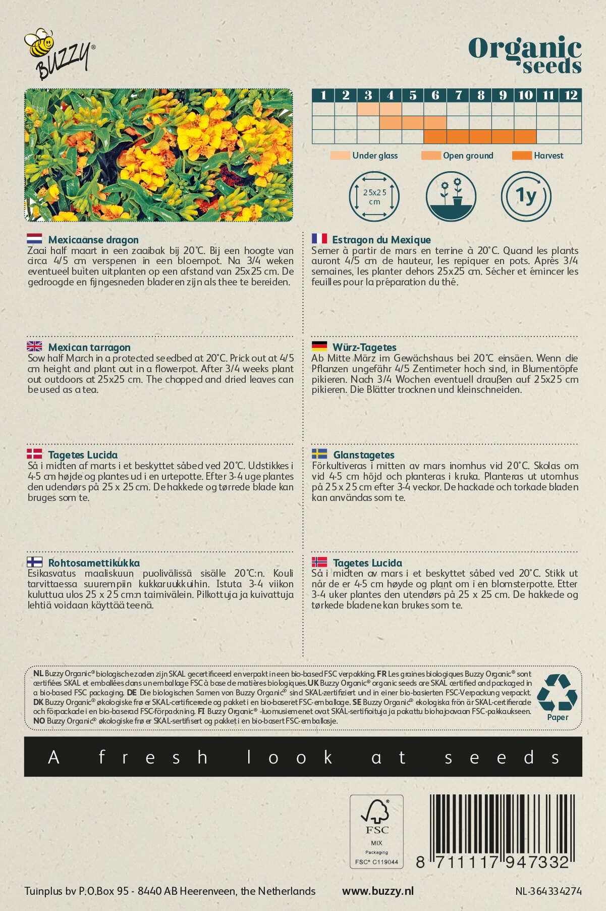 Buzzy® Organic Tagetes Lucida, Mexicaanse dragon (BIO)