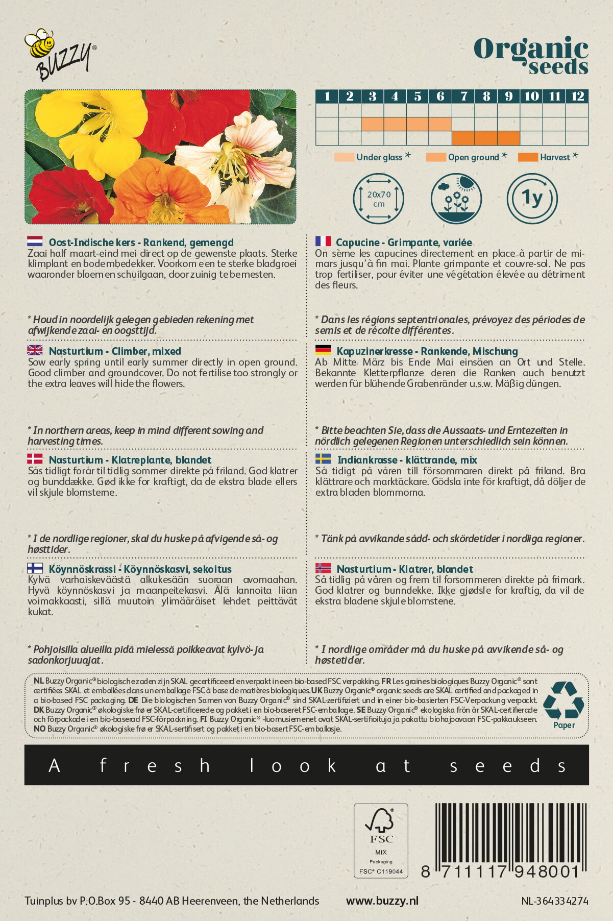 Buzzy® Organic Tropaeolum, Oost-Indische kers enkelbl (BIO)