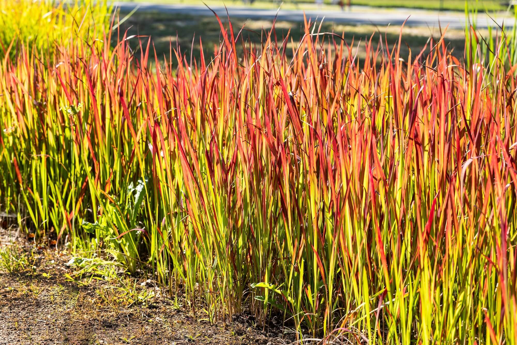 De opvallende rode tinten van het Japanse bloedgras is een kleurrijke verschijning in de tuin.