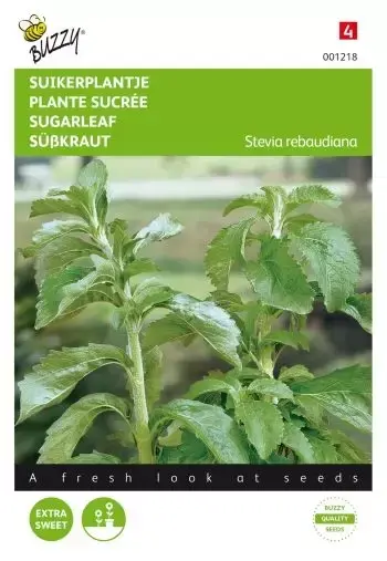 Suikerplantje Vanaf februari in een zaaibakje bij 20°C of later buiten onder glas; na verspenen, vanaf medio mei verplanten. Is afkomstig uit Zuid-Amerika, waar de oorspronkelijke bevolking dit al eeuwenlang gebruikte als natuurlijke zoetstof voor bijvoorbeeld thee.