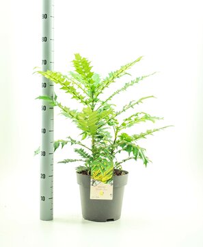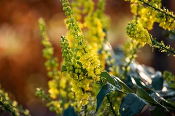 Mahonia bloeit in de winter met opvallende gele bloemen.